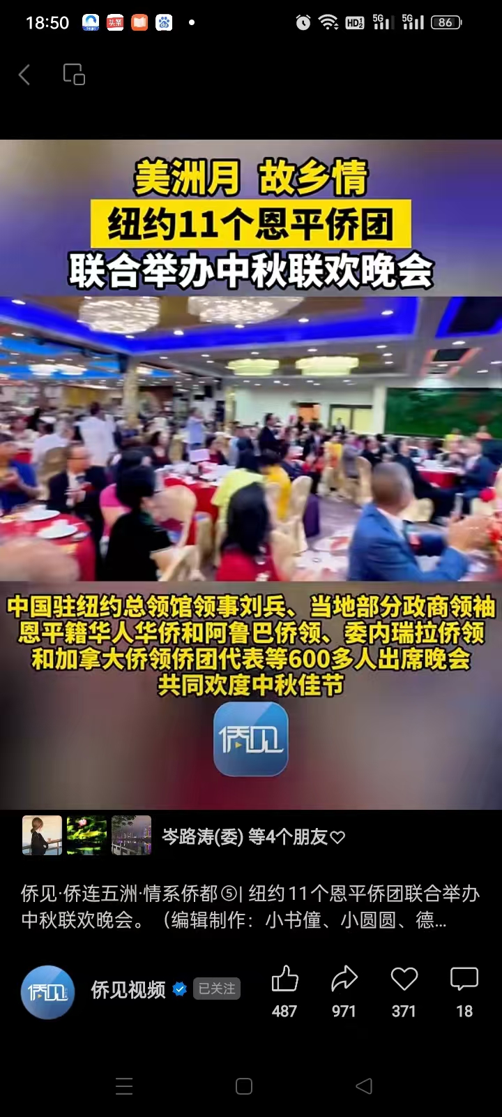 据介绍,为弘扬中华民族传统文化,向“海内海外两个江门”及时报道、呈现世界各地江门五邑籍华人华侨和侨团欢度中秋佳节、庆祝中华人民共和国成立75周年的盛况,江门广播电视台和江门市侨联联合推出侨见·“侨连五洲·情系侨都”庆中秋贺国庆系列短视频。邀请书发出后,得到世界各地众多江门五邑籍侨团热烈响应,他们纷纷拍摄、制作贺中秋短视频投稿参与。