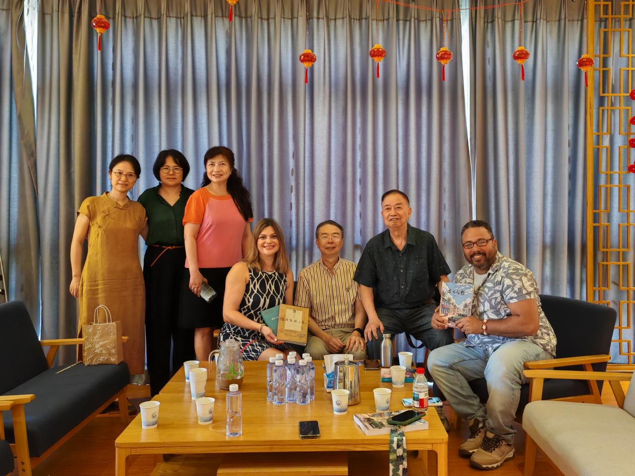 10月8日,在台山市。华南理工大学中外学者江门侨乡田野考察组一行采访了台山籍乡亲、暨南大学中文系教授、古巴侨属黄卓才,参观了台山市银信博物馆以及四九镇侨文化体验馆宝世楼。通过采集侨眷侨属的口述历史以及侨乡建筑的实地考察,华南理工大学中外学者江门侨乡田野考察组一行近距离感受当年拉美华侨对所在国的巨大贡献、对祖国和家乡的无私奉献。座谈会上,华南理工大学外国语学院教授苏娉感叹:在中华民族伟大复兴的征程中,华侨华人始终是坚定的支持者和积极的参与者,他们始终保持着爱国爱乡、情系故土的赤子情怀,把个人的前途和国家的命运紧密联系起来。中国的革命、建设和改革事业,都离不开广大侨胞的支持。以江门五邑侨乡为例,这块传奇的土地曾经孕育了无数敢为人先的华侨华人先驱,他们下南洋、渡重洋,在异国他乡书写传奇;他们心怀家国,以侨资、侨智、侨力回馈桑梓,在中国乃至世界舞台上创造了无数个“第一”。100多年来,纵观江门五邑籍华侨华人在海内外的卓越贡献,充分展现他们以侨乡为根基,以世界为舞台,书写出无愧时代无愧历史百年传奇的壮丽篇章。