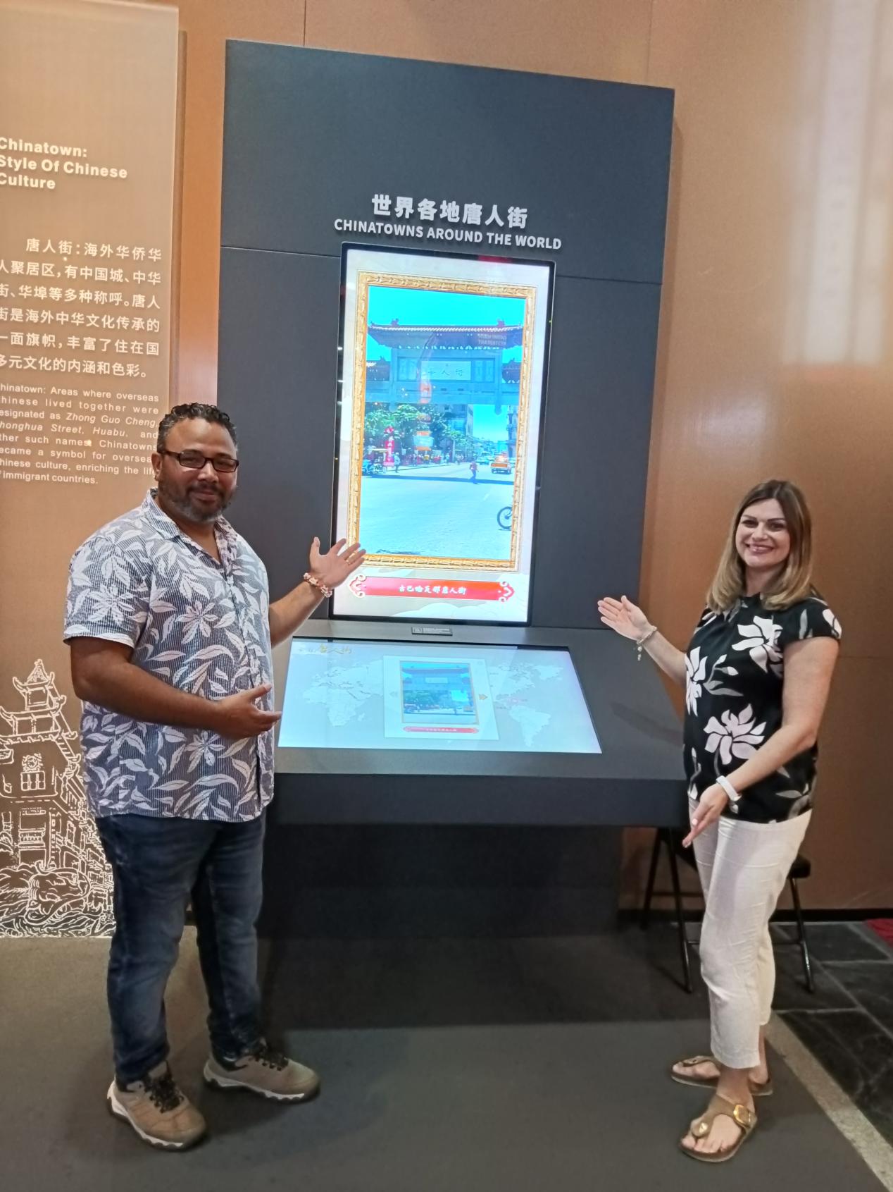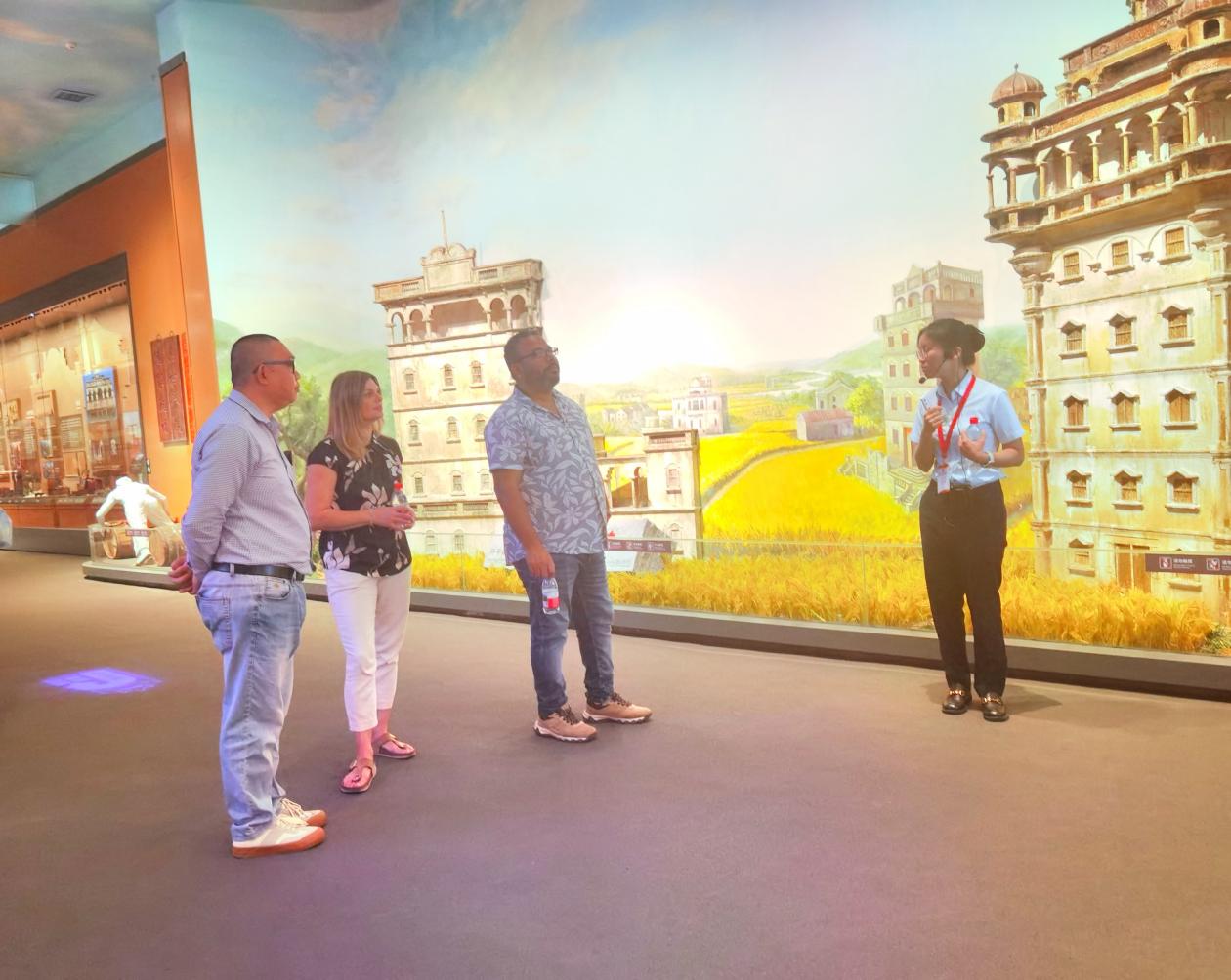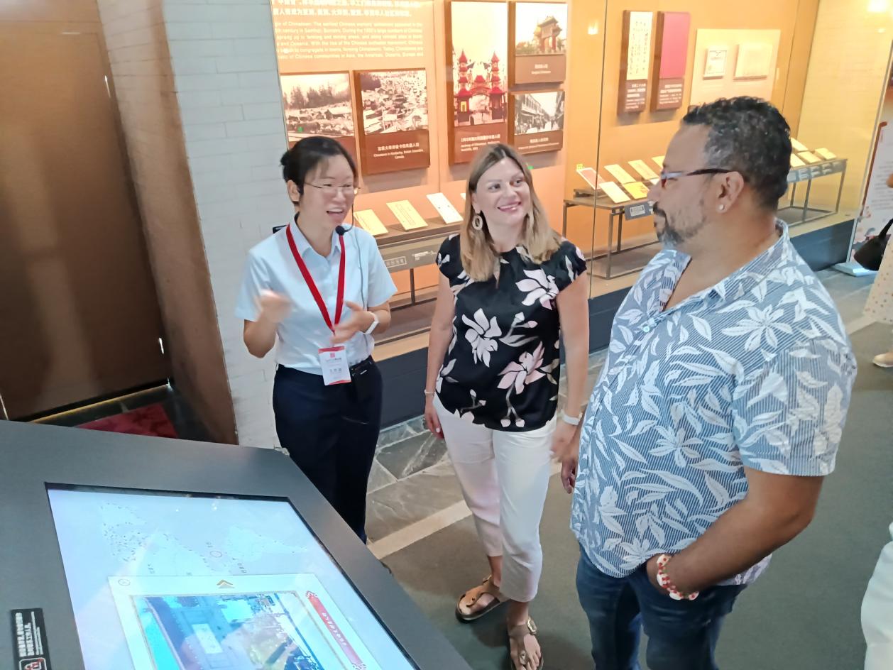 莎拉·尼姆富尔(中)与雷塞尔·特赫达·马丁内斯(右)参观江门华博馆
